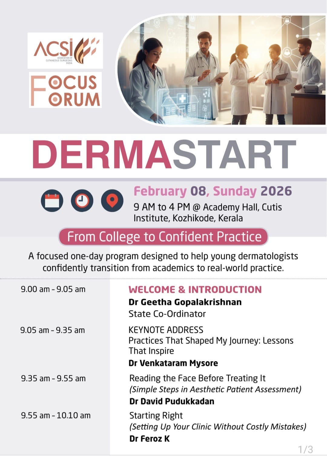 We are delighted to announce DermaStart, a new and unique flagship initiative by ACSI – Practice Management Focus Forum, specially designed to support young dermatologists as they transition from postgraduate training to confident, real-world clinical and procedural practice.